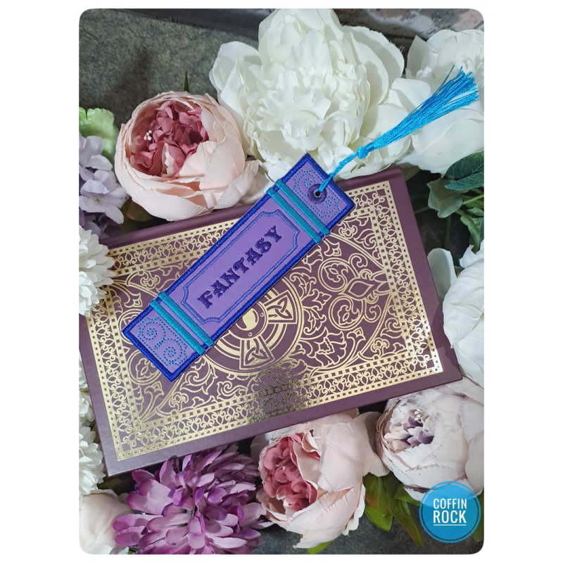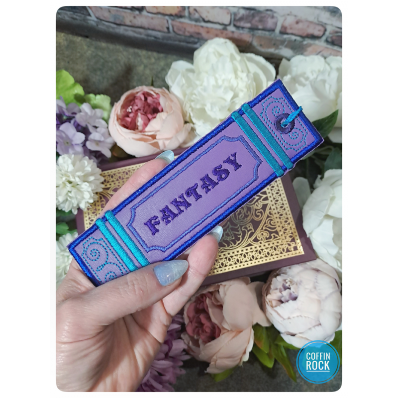 embroidered bookmark Fantasy purple and blue dimensions: 16.5 x 5 cmimitation leather and felt on the back