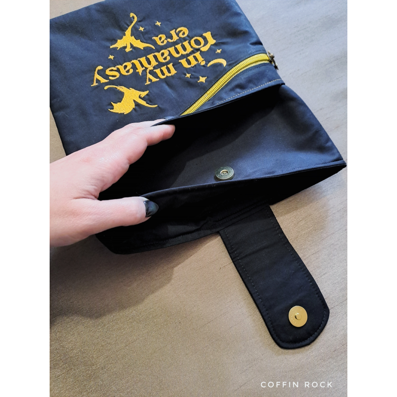 Deluxe book sleeve, a padded sleeve closed with a magnetic flap, with a patch pocket and a pocket that closes with a zip on the front. This is the perfect model for people who annotate their books or want to carry earphones, an e-reader, pencils and highlighters, bookmarks, etc.