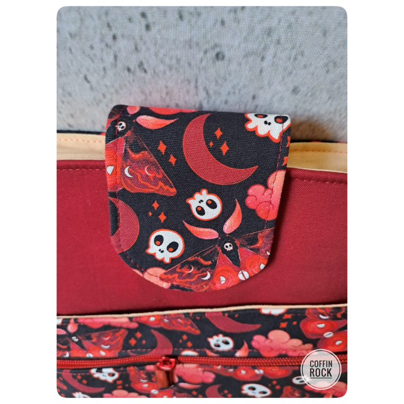 ACADEMIA level sleeve: 3 pockets, 1 large padded pocket to comfortably hold your book, closes with a magnetic flap, 1 patch pocket on the front to slip in a notebook or e-reader, and 1 pocket with a zip closure to store your pens or other small accessories