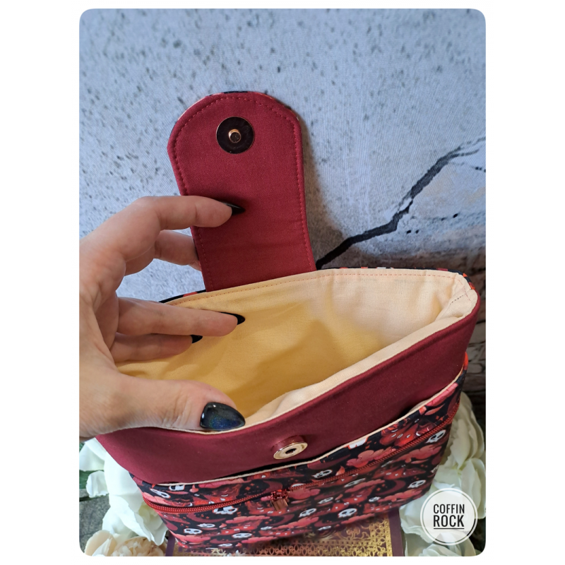 Deluxe book pouch, a padded pouch closed by a magnetic flap with a patch pocket and a pocket that closes with a zip on the front. It is a perfect model for people who annotate their books, want to carry earphones, e-readers, pencils and highlighters, bookmarks, etc.
