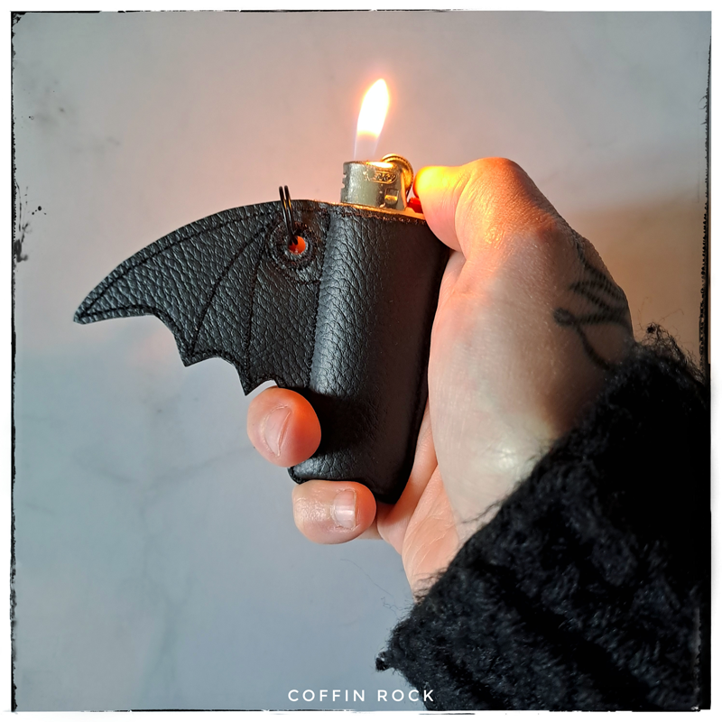 Lighter case (large, rounded) to hang on your bag, phone, or otherwith a bat wingcolour: blackdimensions: approx 10 x 7.5 cm