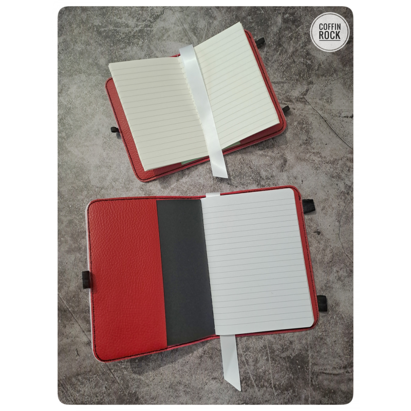 slipping in a pen (supplied with it), notebook also supplied