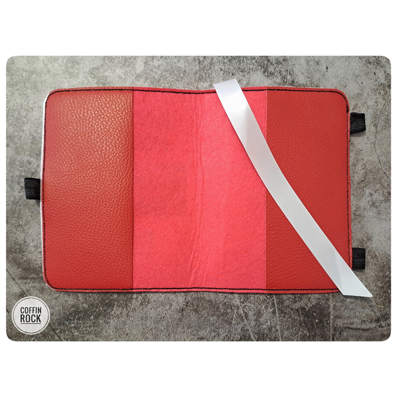 ribbon page marker and elastic on the sides to keep it closed by