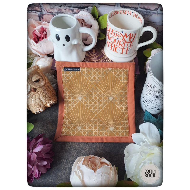 They can also be used to protect your hands from the burns of a hot kettle or teapot thanks to a special padding in the middle, so you can use each square in three different ways (four if you add decoration, because you can of course put your square on your magic altar, in your interior or kitchen decoration)