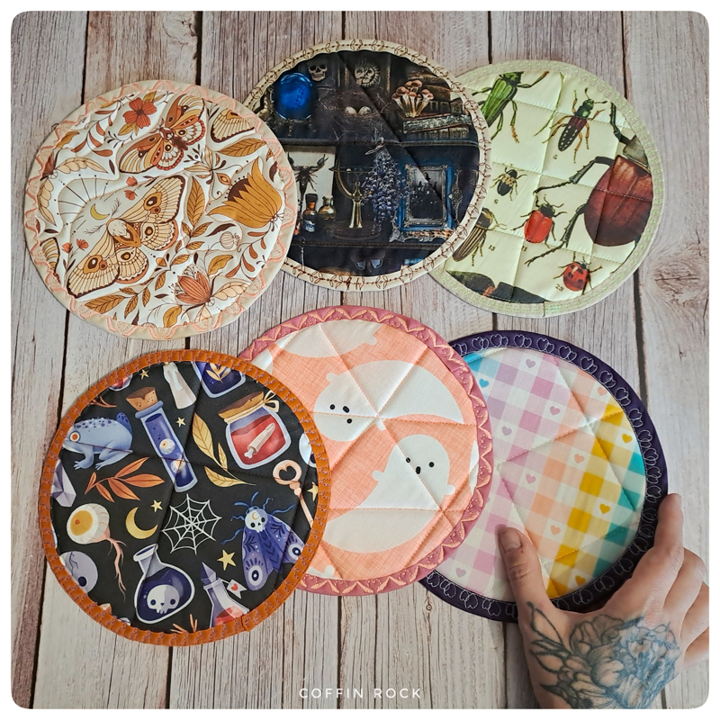 When I was making the witch’s hats, I was left with this lovely padded, quilted circle.