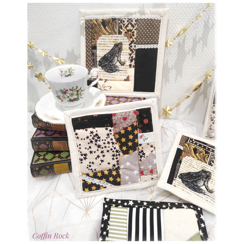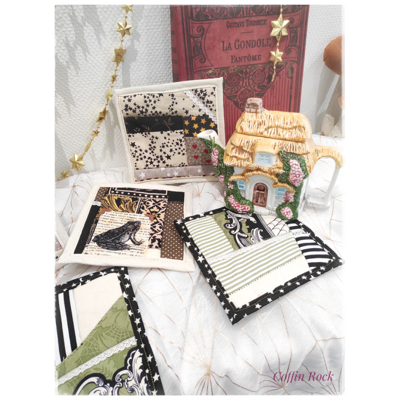They can also be used to protect your hands from the burns of a hot kettle or teapot thanks to a special padding in the middle, so you can use each square in three different ways (four if you add decoration, because you can of course put your square on your magic altar, in your interior or kitchen decoration)