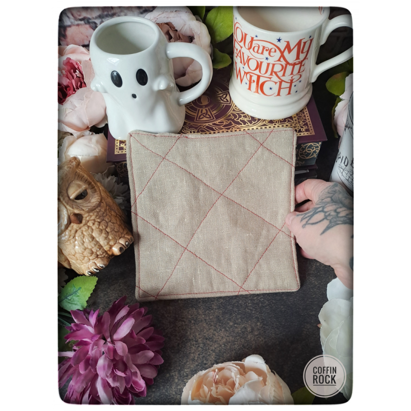 mais ils peuvent également servir à protéger ses mains des brûlures d'une bouilloire ou théière chaude grâce à un rembourrage spécial au milieu, vous pouvez donc utiliser chaque carré de trois manières différentes (quatre si on ajoute la décoration, car vous pouvez bien entendu poser votre carré sur votre autel magique, dans votre déco d'intérieur ou de cuisine)