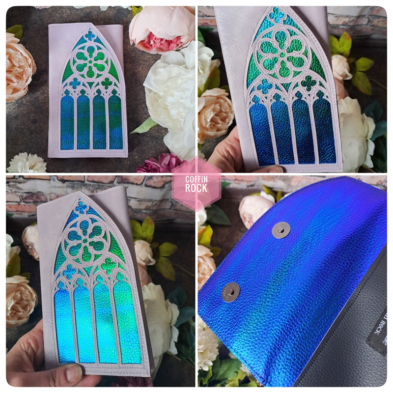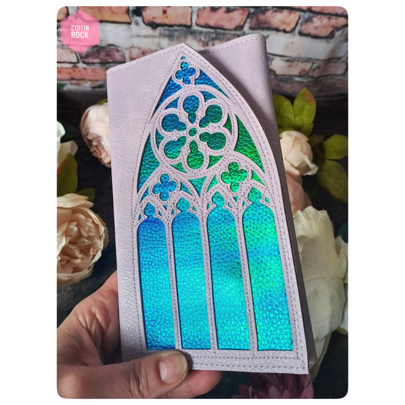- modèle avec rabat en forme de vitrail de cathédrale