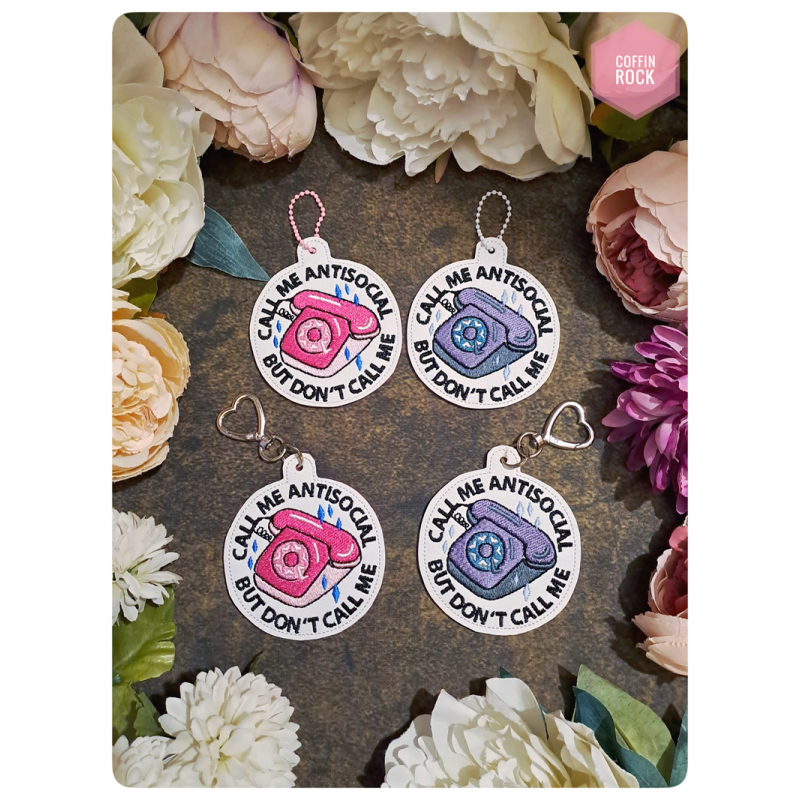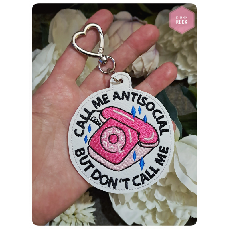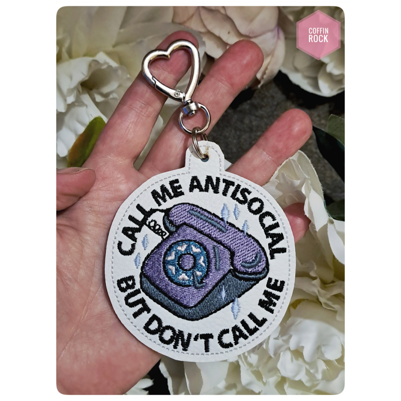 broderie : "calle me antisocial but don't call me" avec un joli téléphone ancien <3