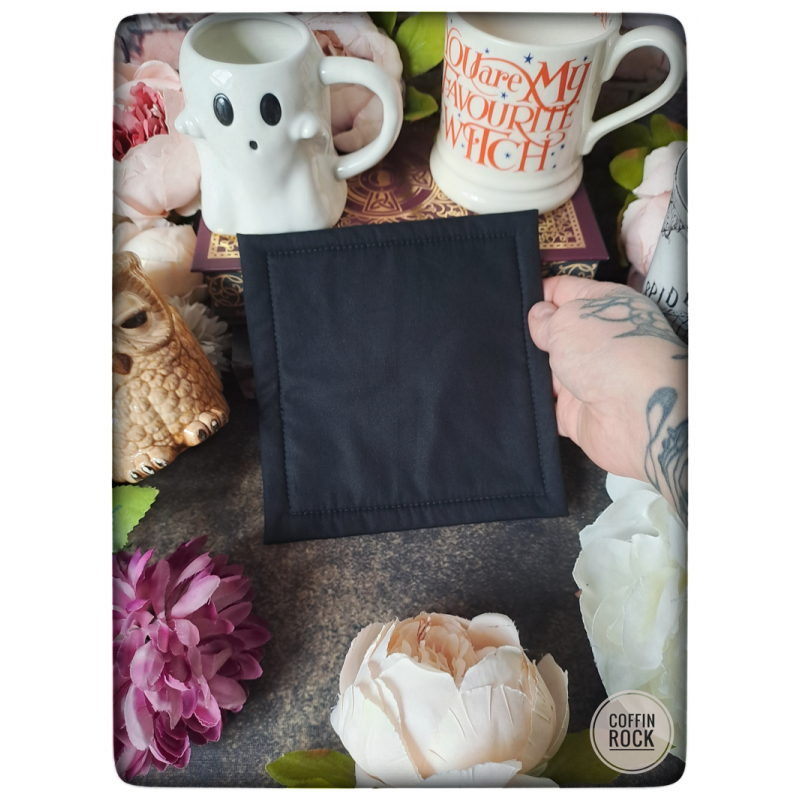 mais ils peuvent également servir à protéger ses mains des brûlures d'une bouilloire ou théière chaude grâce à un rembourrage spécial au milieu, vous pouvez donc utiliser chaque carré de trois manières différentes (quatre si on ajoute la décoration, car vous pouvez bien entendu poser votre carré sur votre autel magique, dans votre déco d'intérieur ou de cuisine)