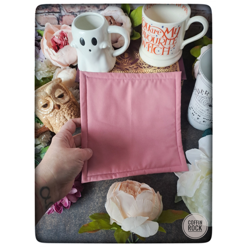 mais ils peuvent également servir à protéger ses mains des brûlures d'une bouilloire ou théière chaude grâce à un rembourrage spécial au milieu, vous pouvez donc utiliser chaque carré de trois manières différentes (quatre si on ajoute la décoration, car vous pouvez bien entendu poser votre carré sur votre autel magique, dans votre déco d'intérieur ou de cuisine)