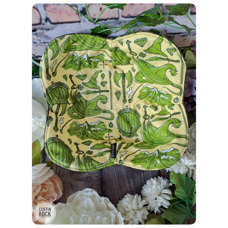 • motif recto : sur fond vert, des motifs inspirés par le hobbit