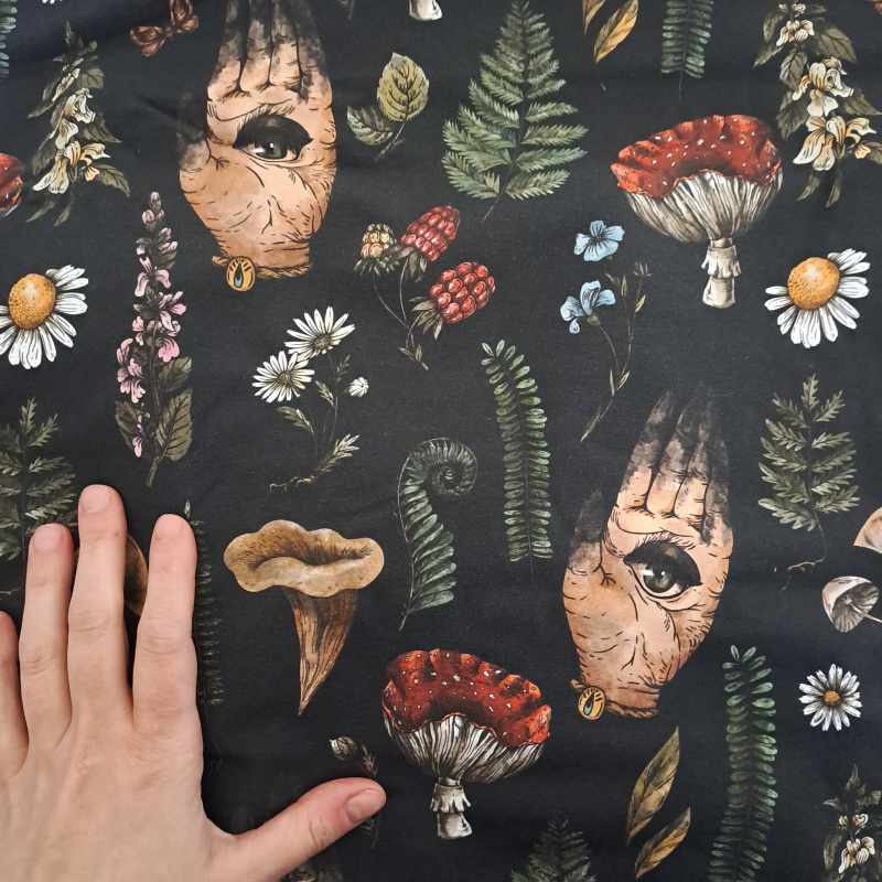 motif : fond noir et motif witchy forestiers
