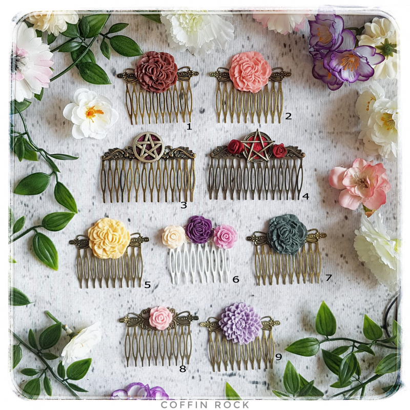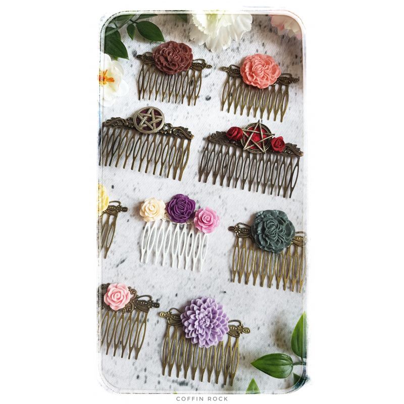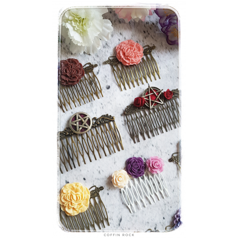 peignes à cheveux en métal, assortis de fleurs ou de pentacles