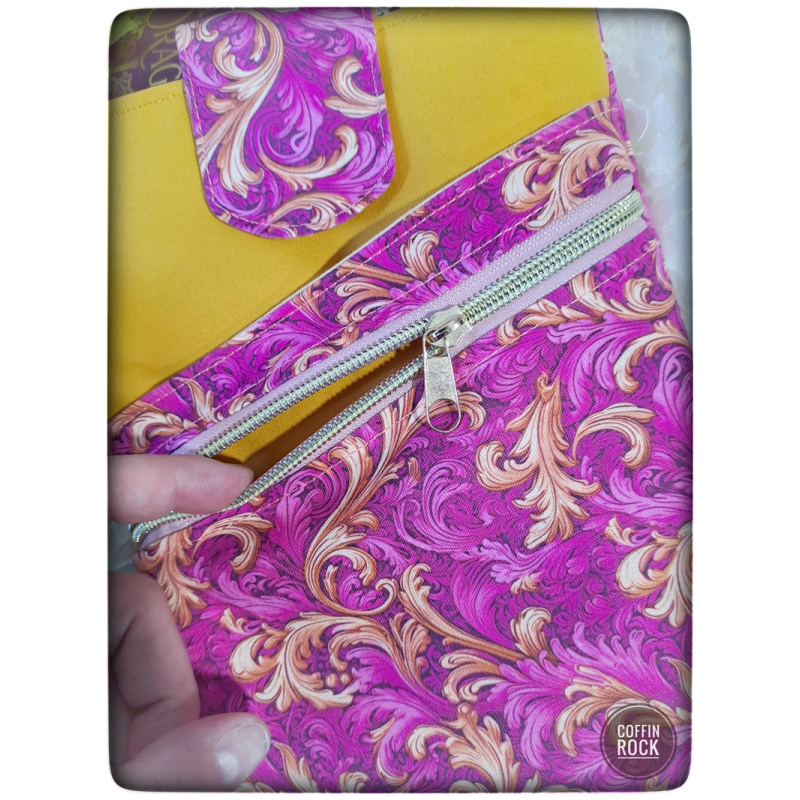 Pochette de livre deluxe, une pochette molletonnée fermée par un rabat magnétique avec une poche plaquée et une poche qui se ferme par une fermeture éclair sur l'avant. c'est un modèle parfait pour les personnes qui annotent leurs livres, souhaitent emporter  écouteurs, liseuse, crayons et surligneurs, marques-pages etc.
