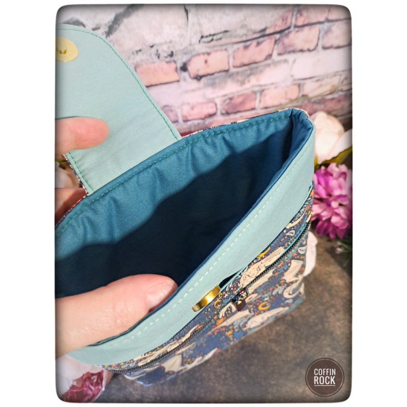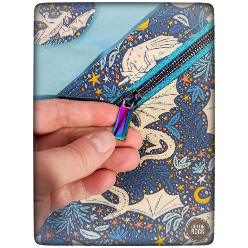 • fermeture éclair : bleu et noir irisé