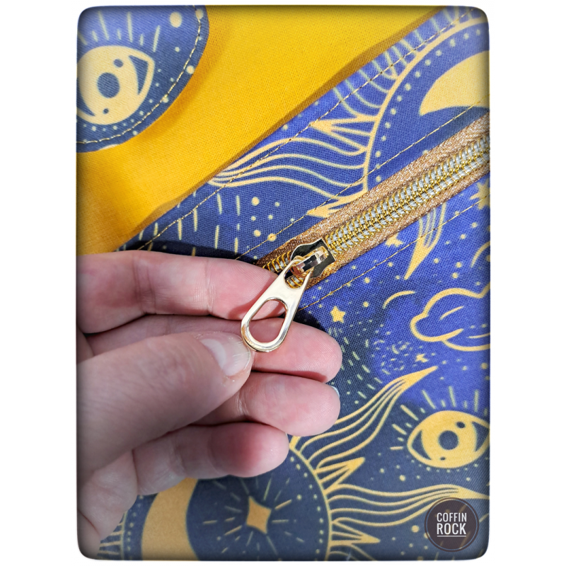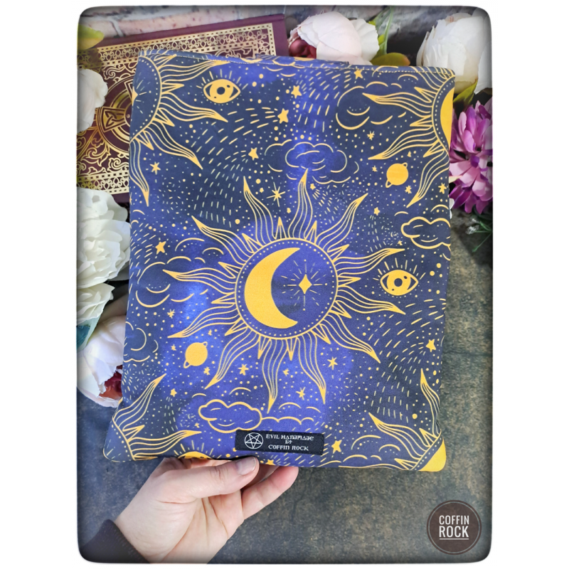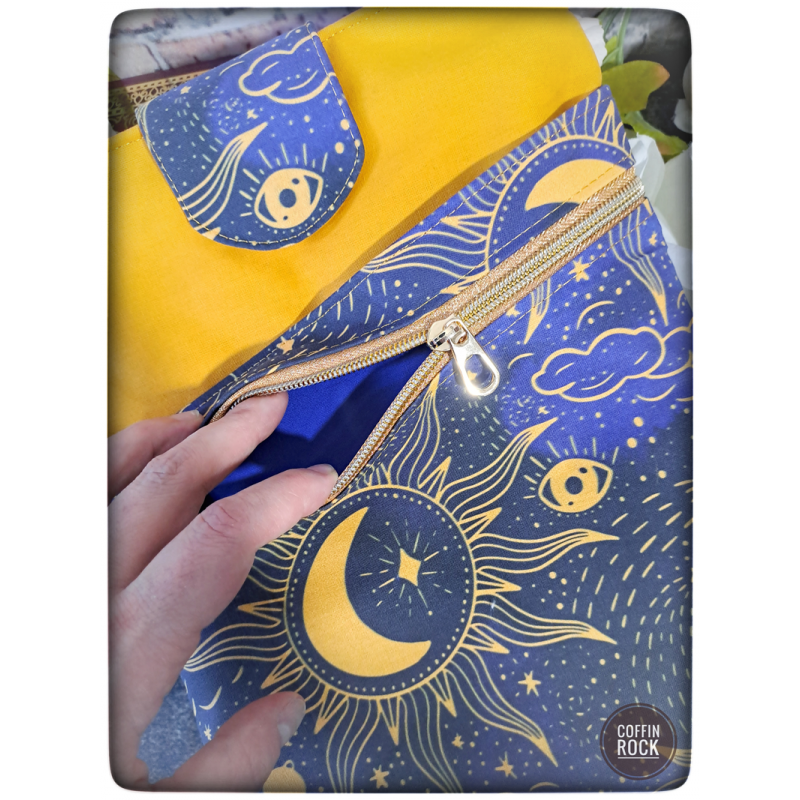 • motif : motif divination whimsigoth, soleil-lune, yeux, nuages et étoiles en bleu et jaune