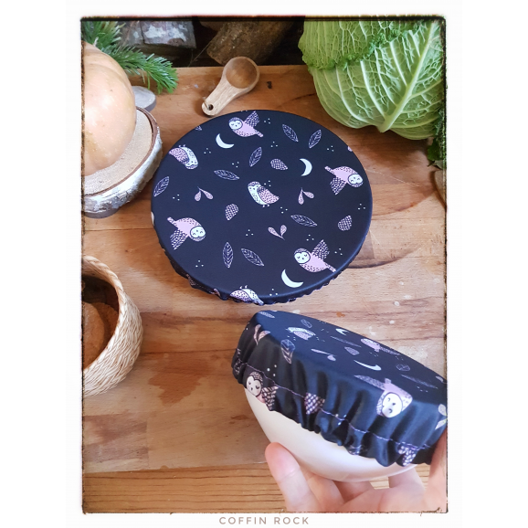 - Matière : tissu PUL, c'est un tissu imperméable mais respirant, ici prévu pour le contact alimentaire, il évite ainsi la condensation tout en protégeant les aliments. C'est une matière idéale pour les couvre-bol