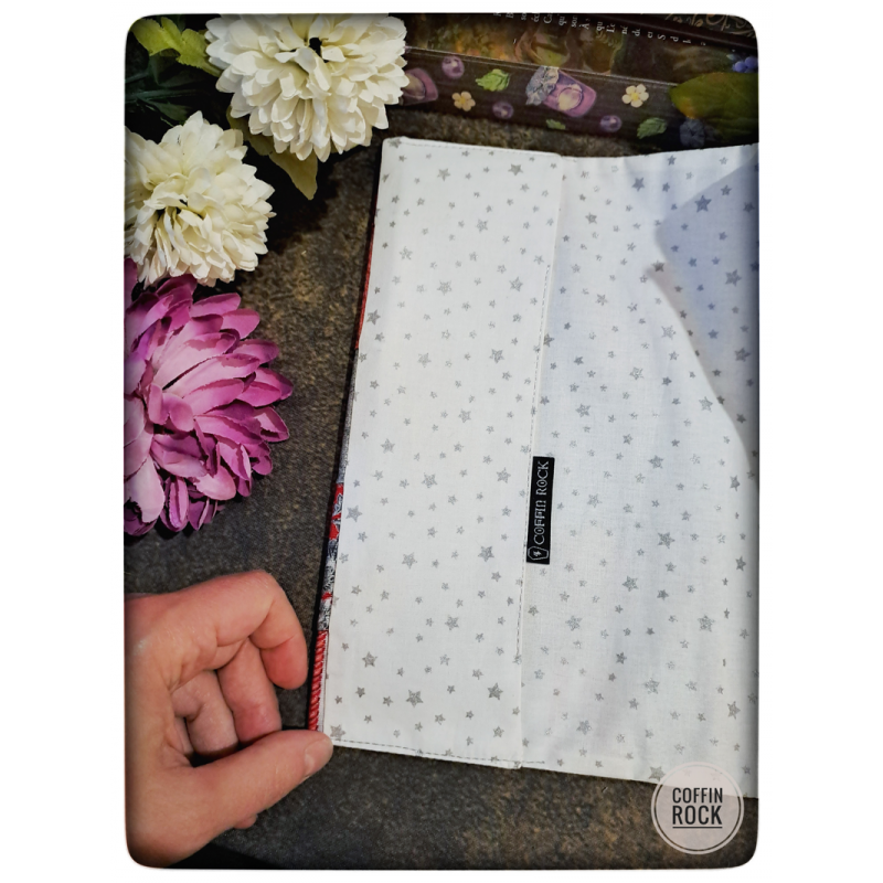 Système ingénieux qui s'adapte à des livres fins ou épais. sur l'arrière, le rabat est ajustable, il se maintient grâce à un élastique que l'on passe sur la page de couverture arrière. le rabat peut également recouvrir les pages et se plier à l'avant du livre afin de le protéger entièrement. cela paraît compliqué expliqué comme ça, mais le système est très simple ! n'hésitez pas à regarder la vidéo linké juste en dessous