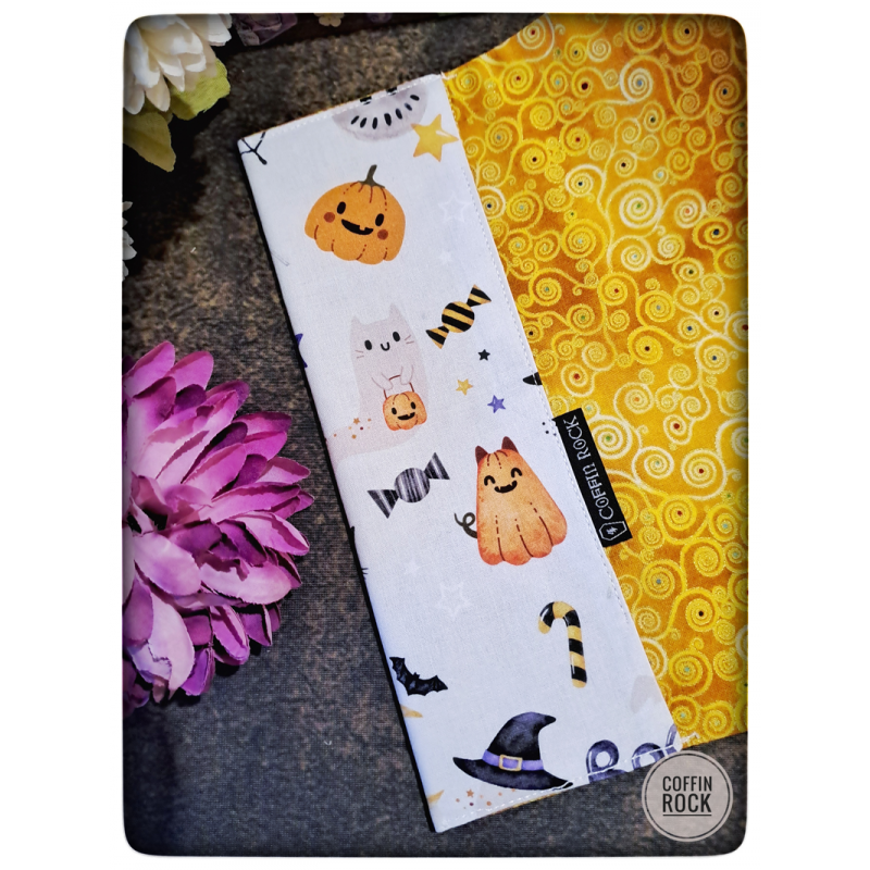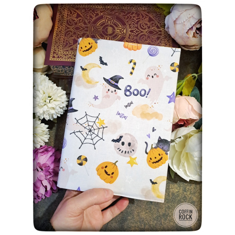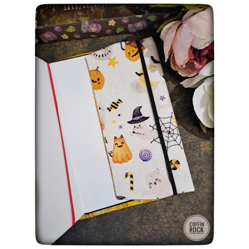Système ingénieux qui s'adapte à des livres fins ou épais. sur l'arrière, le rabat est ajustable, il se maintient grâce à un élastique que l'on passe sur la page de couverture arrière. le rabat peut également recouvrir les pages et se plier à l'avant du livre afin de le protéger entièrement. cela paraît compliqué expliqué comme ça, mais le système est très simple ! n'hésitez pas à regarder la vidéo linké juste en dessous