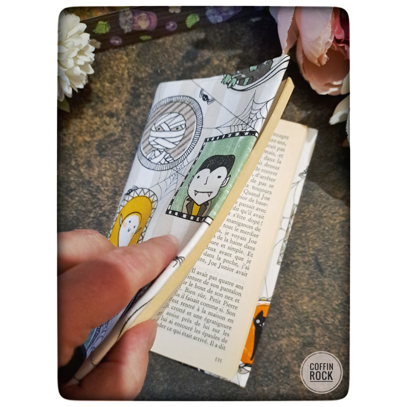Système ingénieux qui s'adapte à des livres fins ou épais. sur l'arrière, le rabat est ajustable, il se maintient grâce à un élastique que l'on passe sur la page de couverture arrière. le rabat peut également recouvrir les pages et se plier à l'avant du livre afin de le protéger entièrement. cela paraît compliqué expliqué comme ça, mais le système est très simple ! n'hésitez pas à regarder la vidéo linké juste en dessous