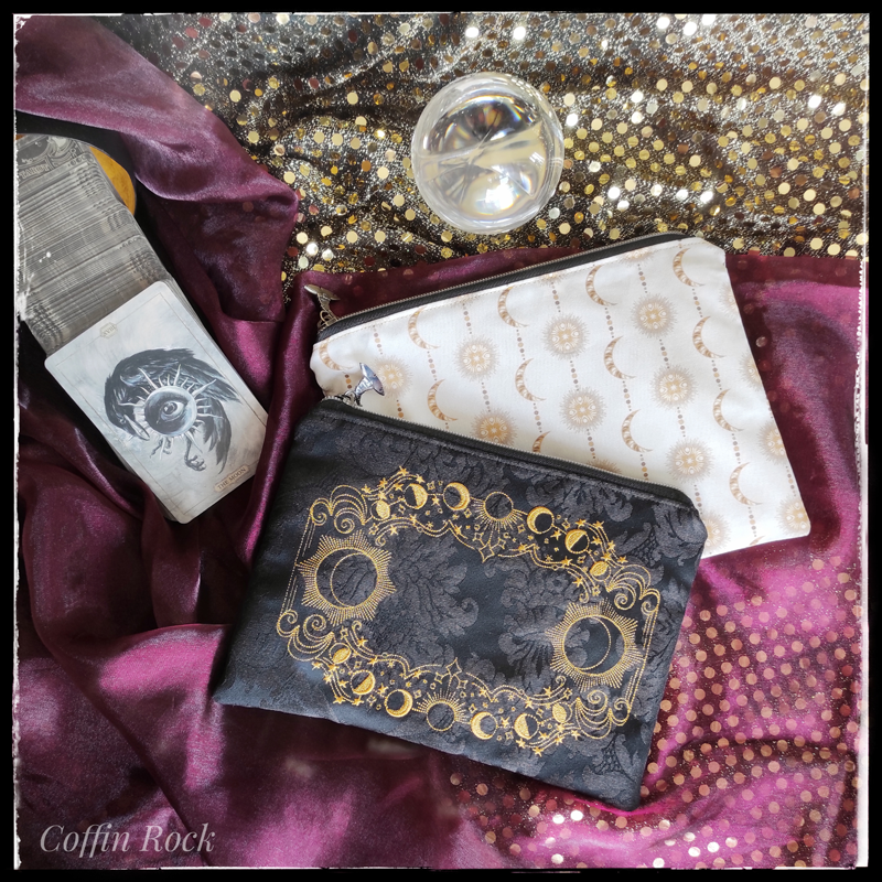 Jolie pochette claire avec un tissu aux impressions de lune et soleil