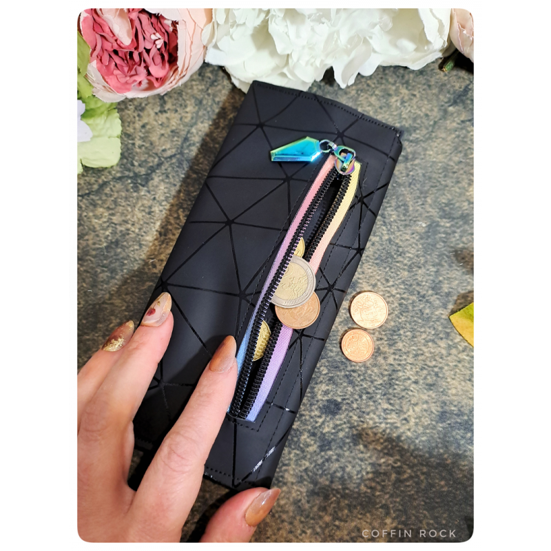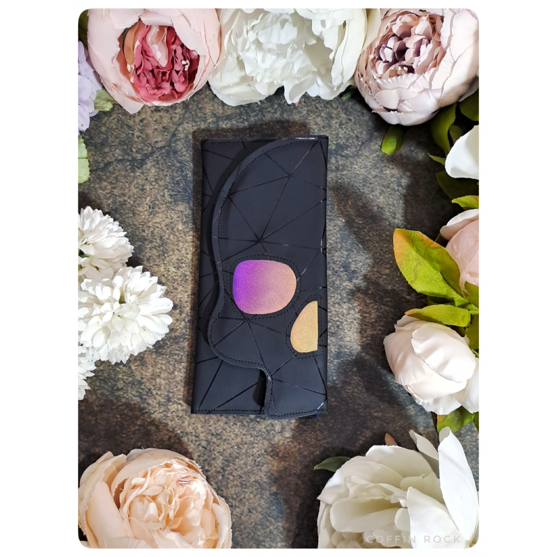 - à l'intérieur : 3 poches plaquées ainsi que 6 espaces pour ranger les cartes (2 poches plaquées sur la gauche et 1 poche plaquée + les 6 espaces pour cartes sur la droite)