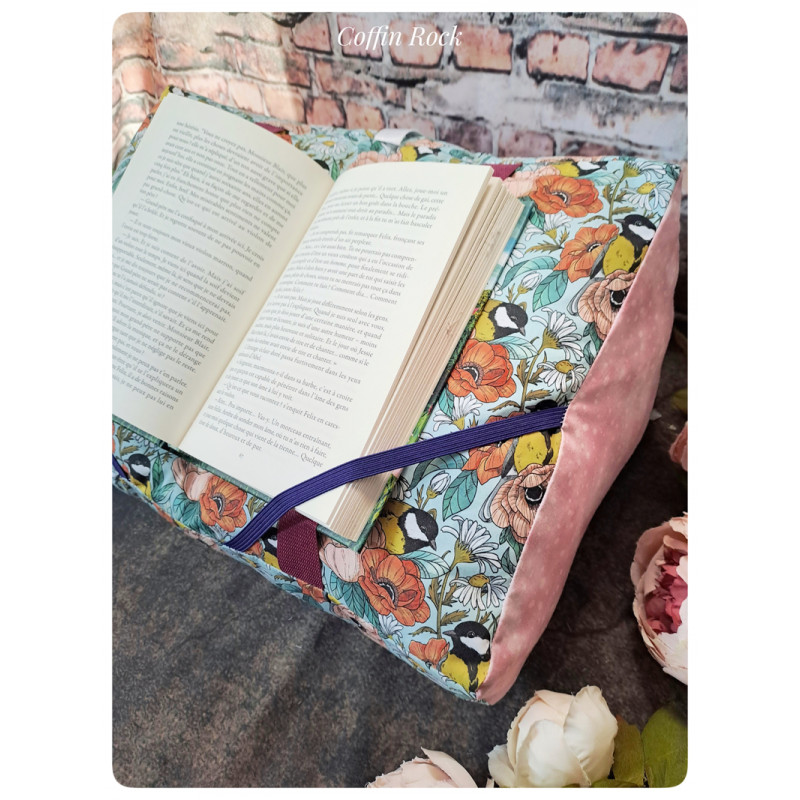 Un coussin de lecture incliné, qui maintient la couverture et les pages. Pour les formats poche, roman et royal et les grands livres (parfait pour soutenir un livre de patron de tricot ou crochet par exemple) - mon petit plus : la base est en simili-cuir ou tissu imperméable, vous pouvez ainsi le poser sur l'herbe, au bord de la piscine ou sur une table sans craindre de le salir ou l'humidifer)