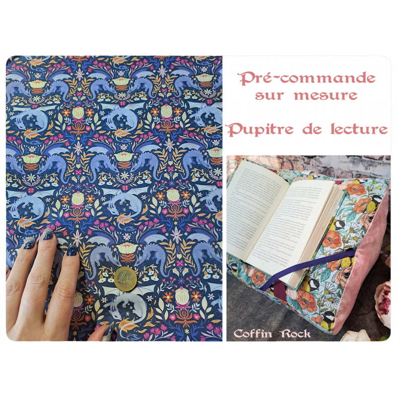 Un coussin de lecture incliné, qui maintient la couverture et les pages. Pour les formats poche, roman et royal et les grands livres (parfait pour soutenir un livre de patron de tricot ou crochet par exemple) - mon petit plus : la base est en simili-cuir ou tissu imperméable, vous pouvez ainsi le poser sur l'herbe, au bord de la piscine ou sur une table sans craindre de le salir ou l'humidifer)