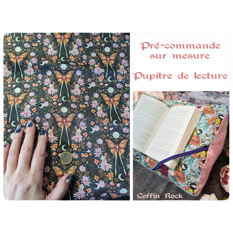 Un coussin de lecture incliné, qui maintient la couverture et les pages. Pour les formats poche, roman et royal et les grands livres (parfait pour soutenir un livre de patron de tricot ou crochet par exemple) - mon petit plus : la base est en simili-cuir ou tissu imperméable, vous pouvez ainsi le poser sur l'herbe, au bord de la piscine ou sur une table sans craindre de le salir ou l'humidifer)
