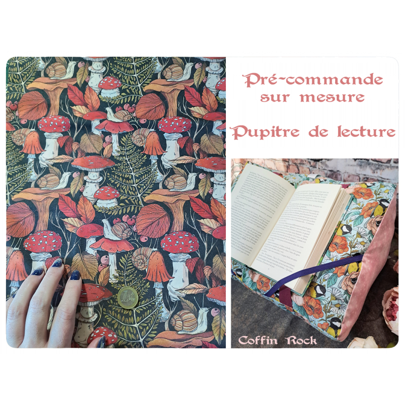 Un coussin de lecture incliné, qui maintient la couverture et les pages. Pour les formats poche, roman et royal et les grands livres (parfait pour soutenir un livre de patron de tricot ou crochet par exemple) - mon petit plus : la base est en simili-cuir ou tissu imperméable, vous pouvez ainsi le poser sur l'herbe, au bord de la piscine ou sur une table sans craindre de le salir ou l'humidifer)