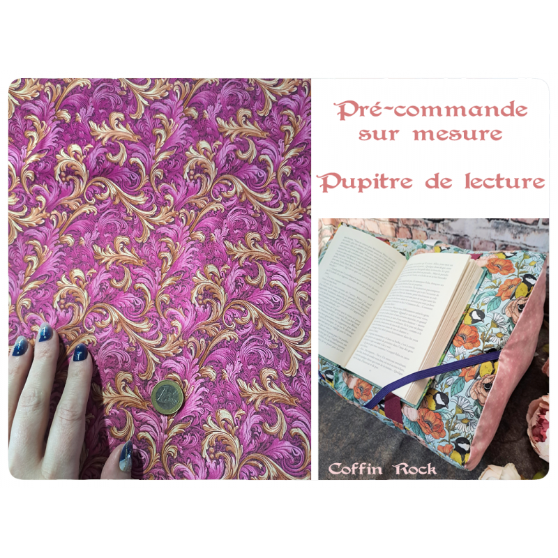 Un coussin de lecture incliné, qui maintient la couverture et les pages. Pour les formats poche, roman et royal et les grands livres (parfait pour soutenir un livre de patron de tricot ou crochet par exemple) - mon petit plus : la base est en simili-cuir ou tissu imperméable, vous pouvez ainsi le poser sur l'herbe, au bord de la piscine ou sur une table sans craindre de le salir ou l'humidifer)