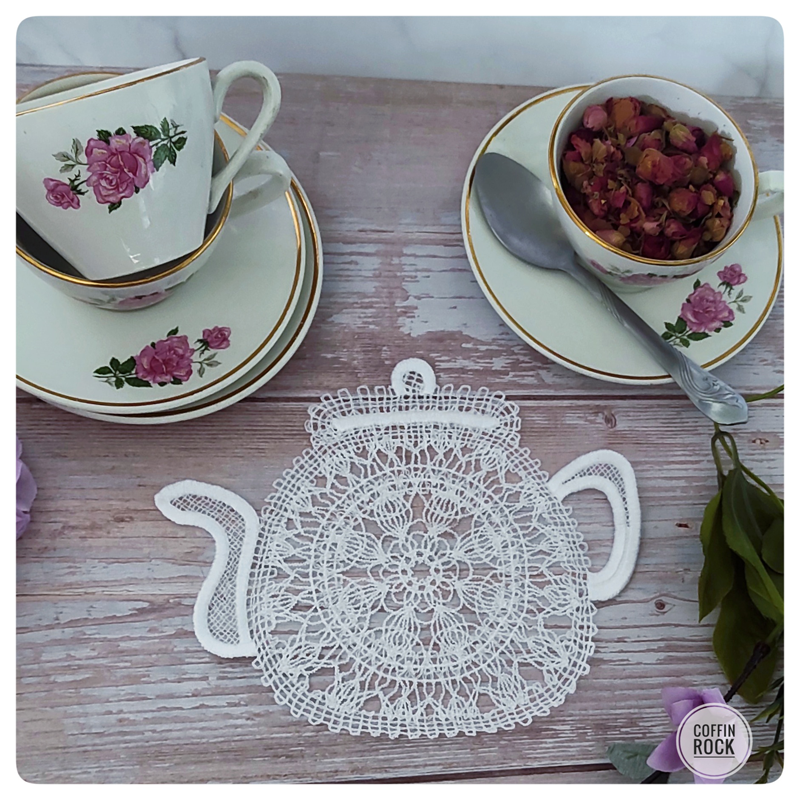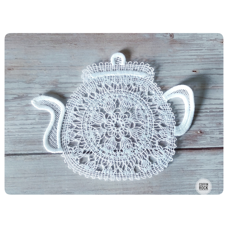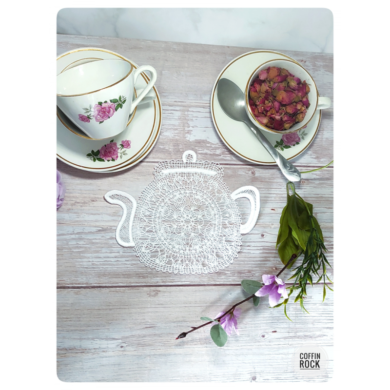 napperon en dentelle en forme de théière