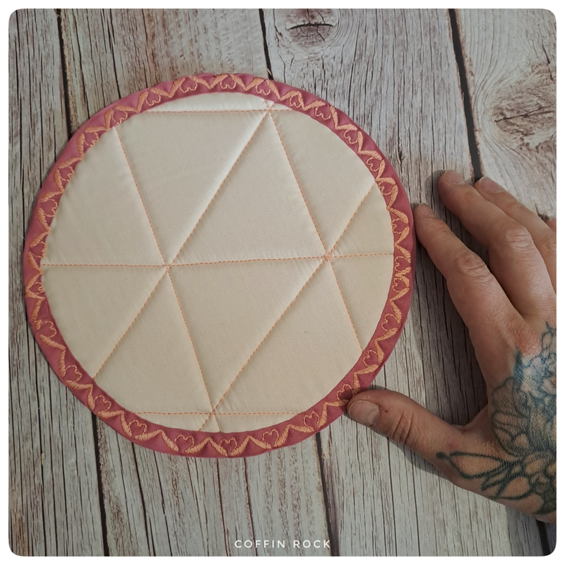 lors de la création des capelines de sorcière, il me reste ce joli cercle molletonné et et quilté.