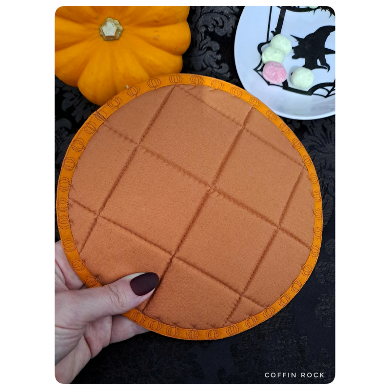 lors de la création des capelines de sorcière, il me reste ce joli cercle molletonné et quilté.