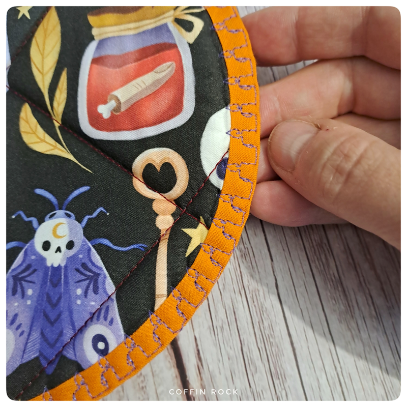 lors de la création des capelines de sorcière, il me reste ce joli cercle molletonné et quilté.